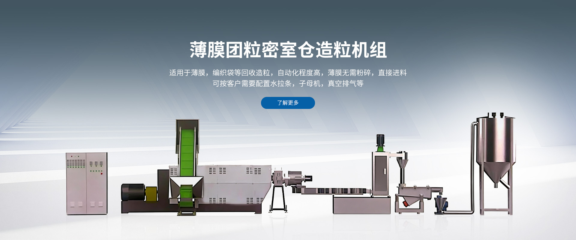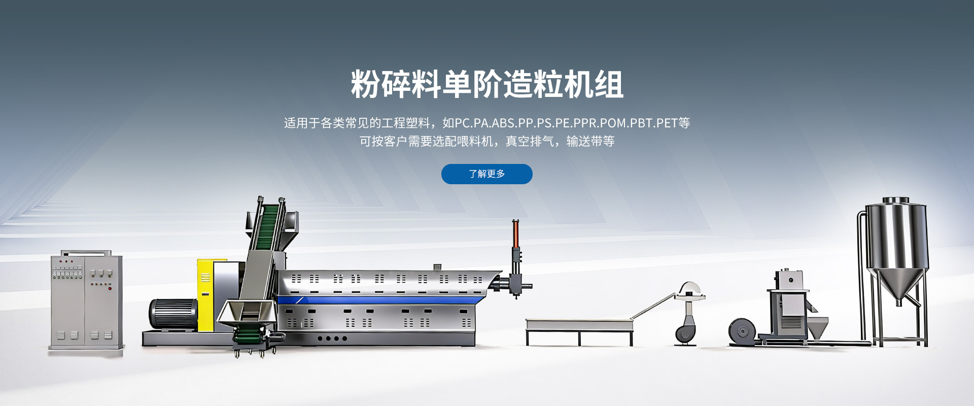 主要产品有:塑料造粒机、塑料上料机、立式搅拌机、模头换网器等,目前产品广泛用于塑胶资源再生利用,塑胶材料改性等行业。